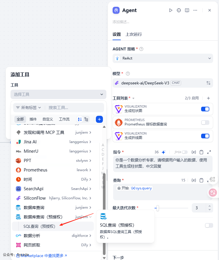 - • 数据库查询插件必须自己输入sql,你得在Agent之前用LLM生成sql