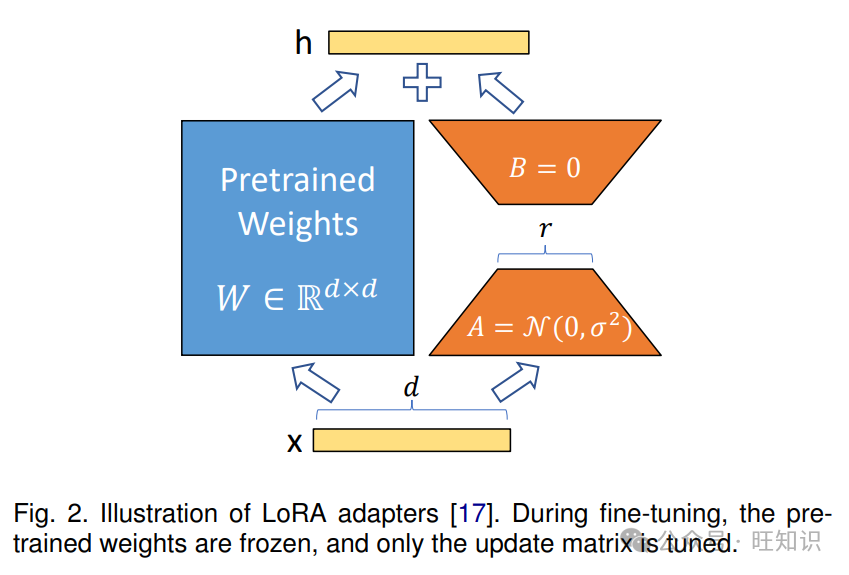 - 采用特定的参数初始化策略和微调过程,冻结原始权重,仅训练低秩矩阵。