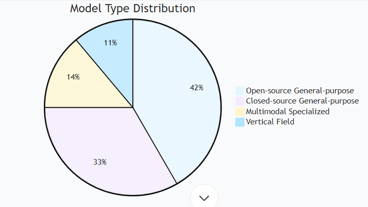 pie title 模型类型分布 “闭源通用” : 12 “开源通用” : 15 “多模态专用” : 5 “垂直领域” : 4 -