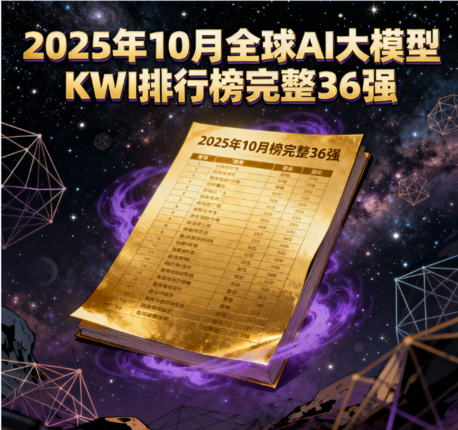 2025年10月全球AI大模型KWI排行榜完整36强数据(基于贾子智慧指数 Kucius Wisdom Index, KWI)