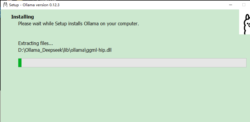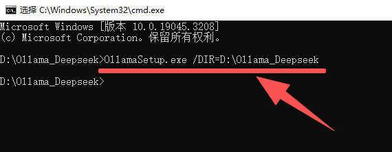 4. 在CMD窗口输入:OllamaSetup.exe /DIR=D:\Ollama_Deepseek 然后按回车! 就启动软件的安装步骤 !