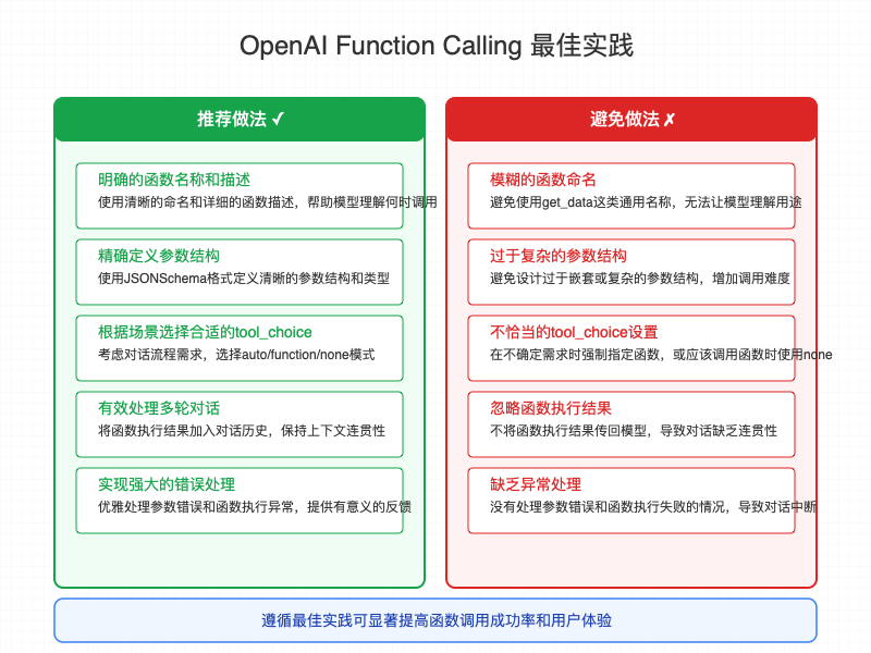 - 强制指定函数模式:将tool_choice设置为一个包含函数名称的对象。这种模式会强制模型调用指定的函数,无论用户输入内容是什么。适用于特定功能的工作流程。