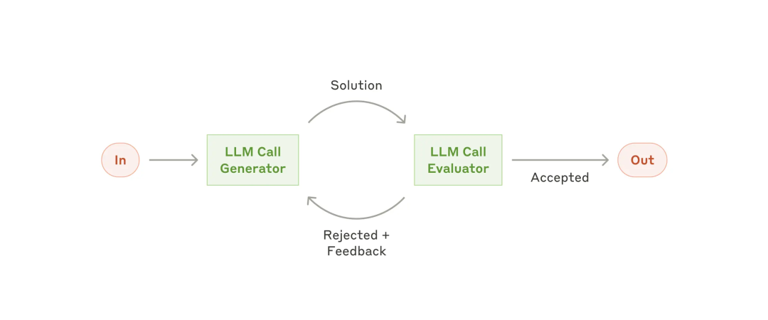 评估者-优化者(Evaluator-optimizer)范式:一个 LLM call 负责生成响应,而另一个 LLM call 负责评估和反馈,形成一个闭环。