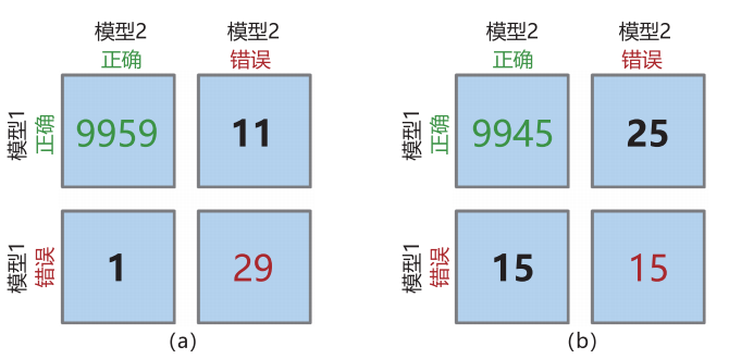 如果两个模型的结果大多数都一样(同时对或同时错),说明它们性能相近;