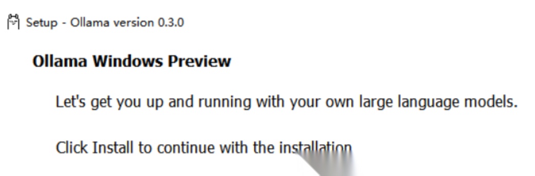 DIR后填写自定义安装目录,如D:\Net_Program\Net_Ollama):OllamaSetup.exe /DIR="D:\Net_Program\Net_Ollama" - 弹出安装窗口后,点击 “Install”,等待安装完成。