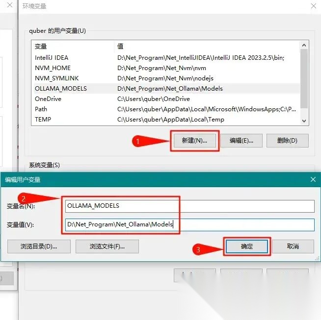 D:\Net_Program\Net_Ollama\Models(自定义的模型存储目录,需提前创建文件夹); -
