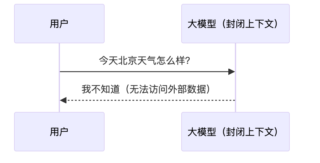 传统大模型有个明显短板 ——只能在 “封闭的上下文” 里推理,没法主动触达外部世界。