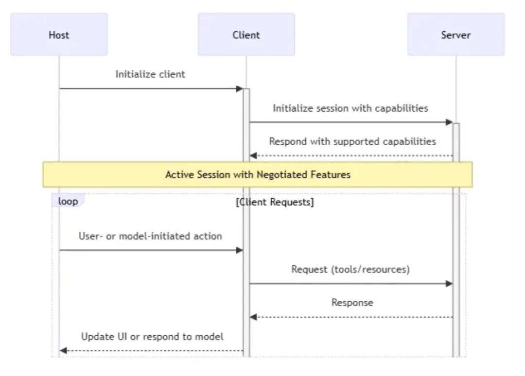 - 功能发现:负责查询 MCP Server 提供的能力,包括可用的 Resources、Tools 和 Prompts。