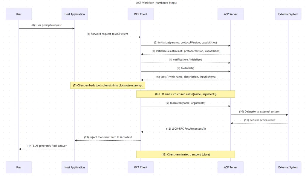 一个具体的 MCP 工作流程示例如下: