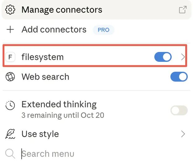 FileSystem MCP Server 是最常用的 Claude Desktop 官方扩展之一,支持以下功能: