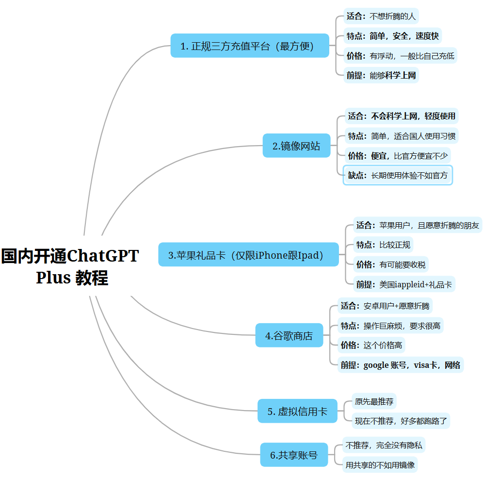 接下来具体说说,国内用户到底要怎么升级GPT Plus,我用我两年的实战汇总了以下六种方法