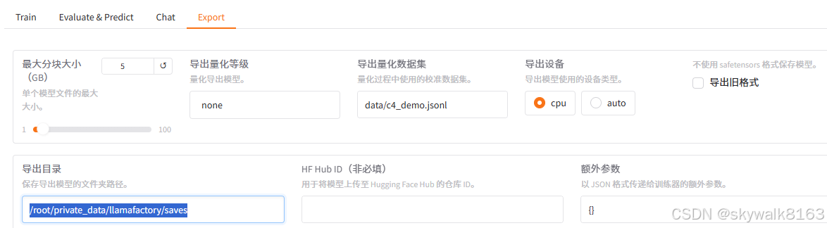 点击export,即可导出微调的模型。比如模型导出到/root/private_data/llamafactory/saves 目录。