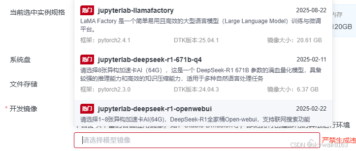 “开发镜像” 直接选模型镜像里的第一个jupyterlab-llamafactory