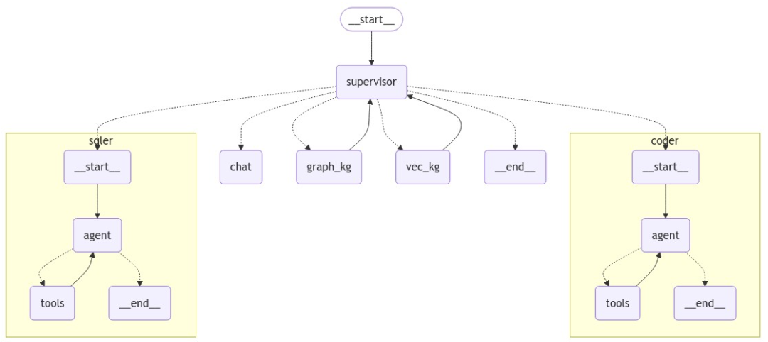 所以我搭建了一个多代理系统,用supervisor来判断用户问题的类型,然后路由到不同的知识库: