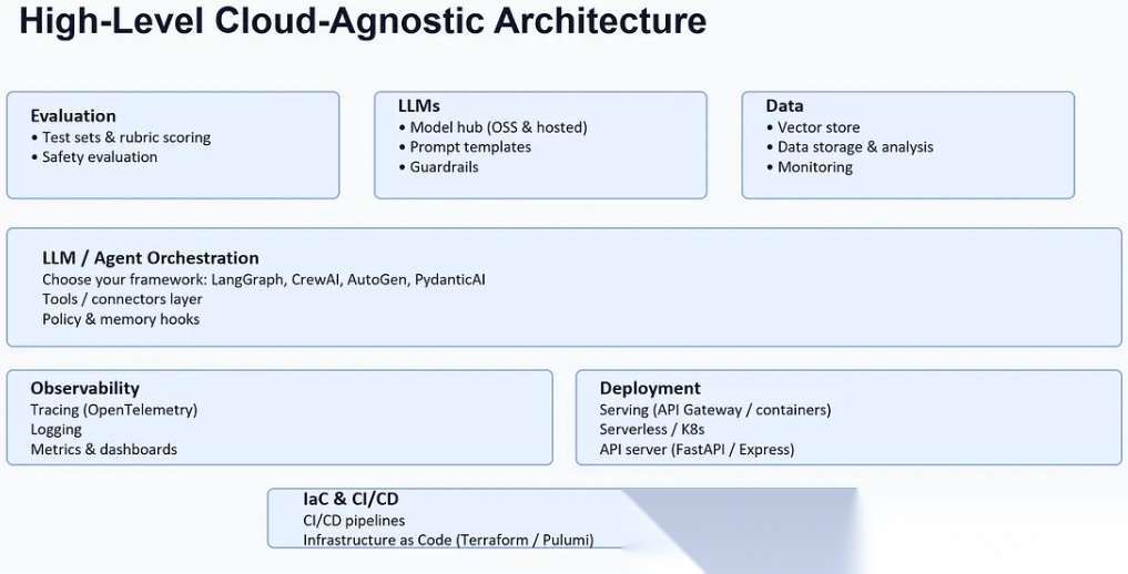 本文是一份面向智能体AI架构的实操指南,包含组件、护栏、依赖注入、验证、部署、可观测性,并附带对 LangGraph、CrewAI 和云技术栈的说明。