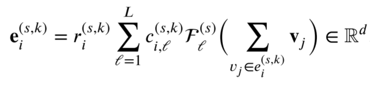 在每个尺度上,通过将同一群体中的智能体embeddings聚合来获取交互embeddings,构造一种包含三个元素的嵌入格式:神经交互的强度,表示交互的强度,神经交互的类别,反映智能体的交互类别,以及per-category函数,表示该类别的交互过程所起的作用