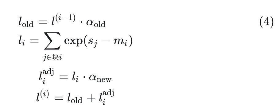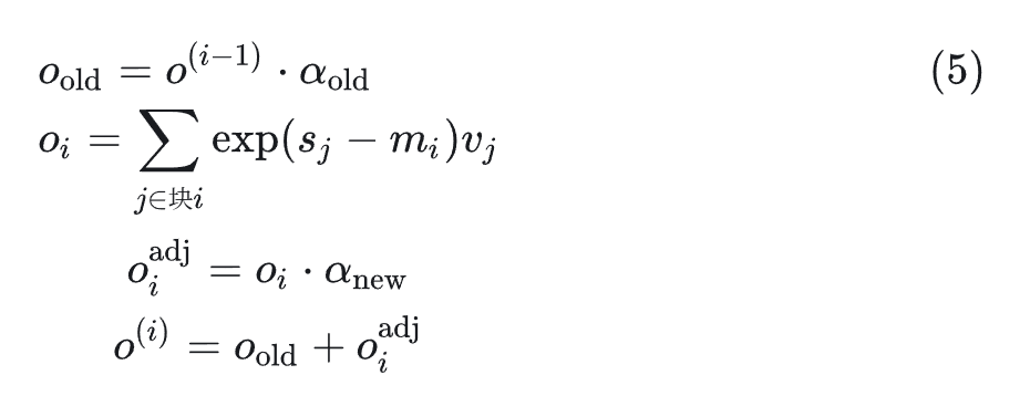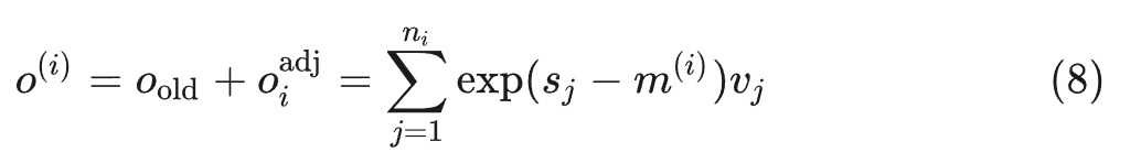 - o(i):处理前 i 个块后的部分输出(未归一化,相当于调整后的分子)。