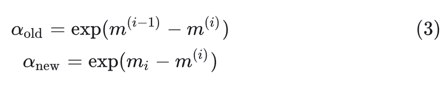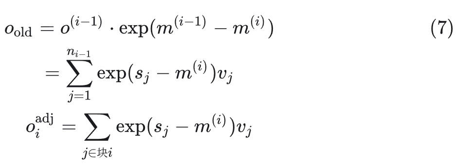 # 调整新块输出: O_j * exp(m_j - M_new)