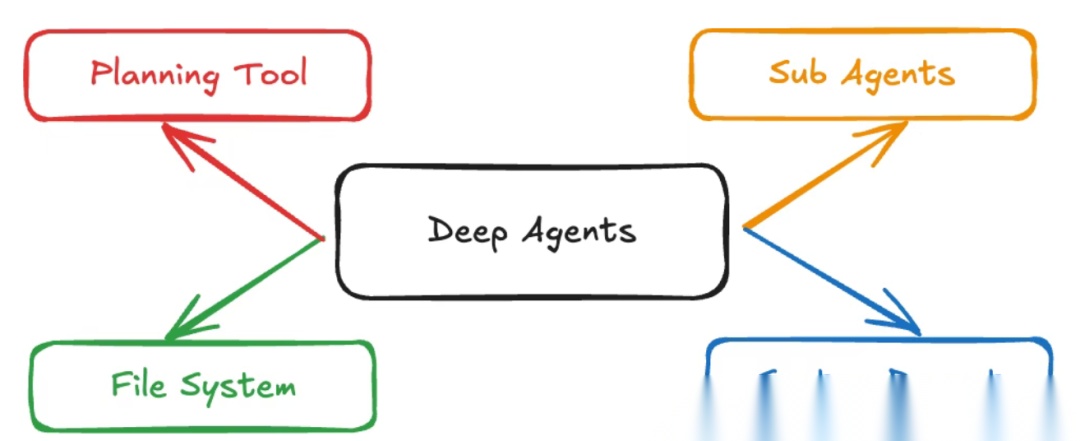 再往上,就是 DeepAgents。它是 LangChain 团队的新项目,也可以看作是 LangChain 的“应用层延伸”。如果说 LangChain 是你动手搭积木的框架,LangGraph 是让积木稳定运转的地基,那 DeepAgents 就像是直接给你准备好了一整套拼好的模型。
