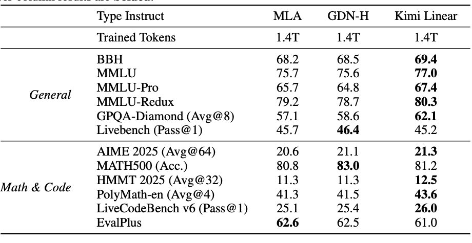 - 卓越的性能:在各种任务中均优于全注意力机制,包括在 1.4T 个 token 的训练运行中,在长上下文和 RL 风格的基准测试中表现优异,且具有公平的比较性。