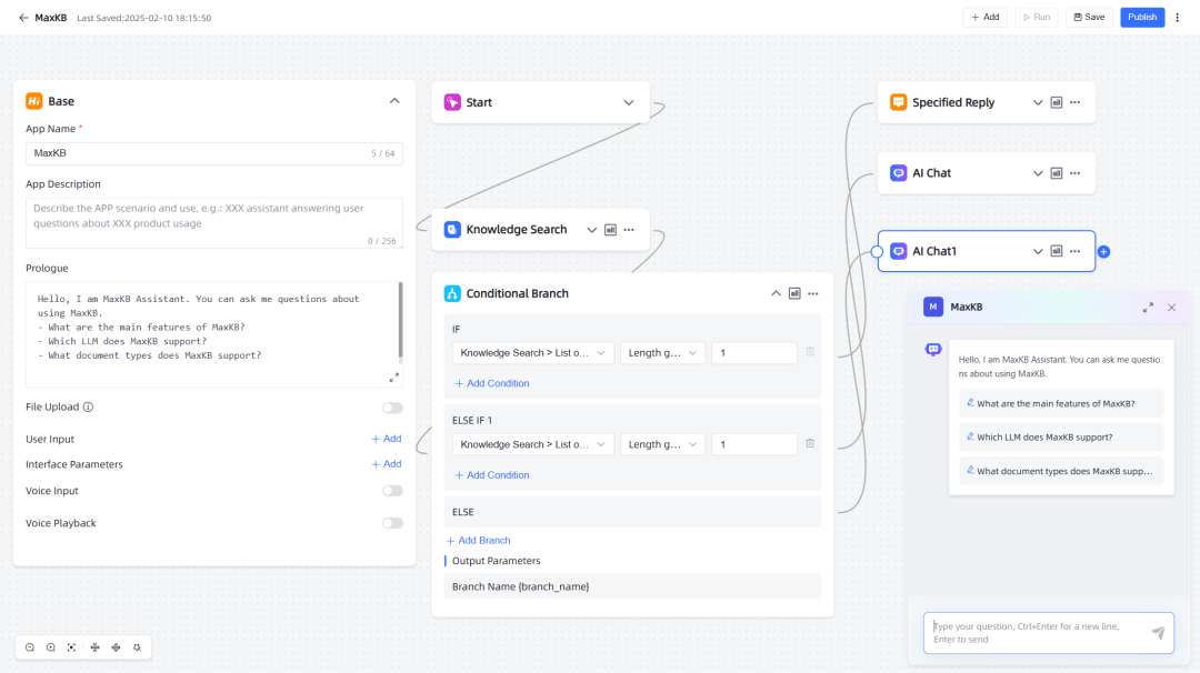 FastGPT通过 Flow 可视化进行工作流编排,从而实现复杂的问答场景.