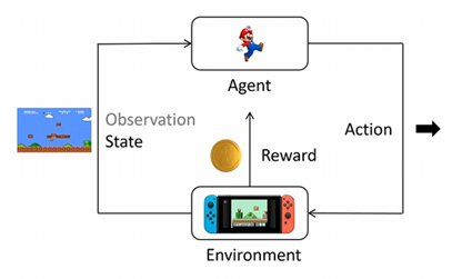 想象一个智能体 (Agent)(比如一个游戏角色或机器人)在一个环境 (Environment) 中(比如一个游戏关卡或现实世界)。这个过程是这样循环的: