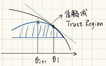 这个限制就形成了一个区域,而这个区域就是所说的信赖域(Trust Region),如图: