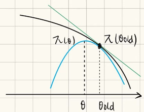通过寻找新函数的最大值(蓝线顶点),就能更快的更新策略