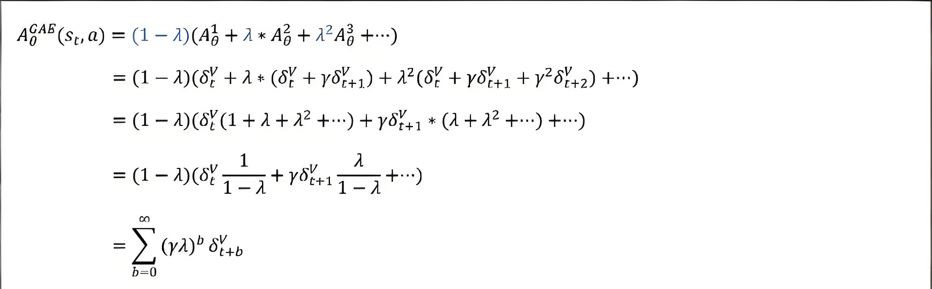 GAE 的核心思想是不只选择其中一种,而是将所有 n-步 优势估计值 进行一次“加权平均”。