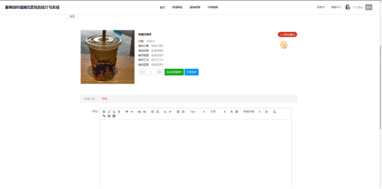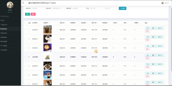 咖啡商品:在咖啡商品页面的输入栏中输入咖啡名称、咖啡甜度和价格进行搜索,可以详情到咖啡商品详细信息,并根据需要进行点我收藏操作;咖啡商品页面如图5-3所示: