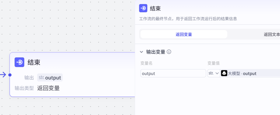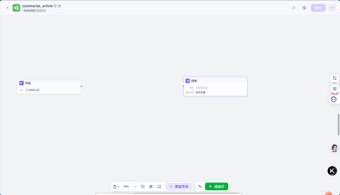 初始界面,只有“开始”节点和“结束”节点,这两个必备节点。