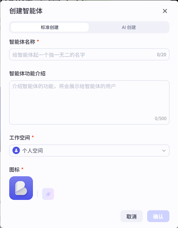 点击创建后,会弹出一个窗口,要求你填写智能体的基本信息:
