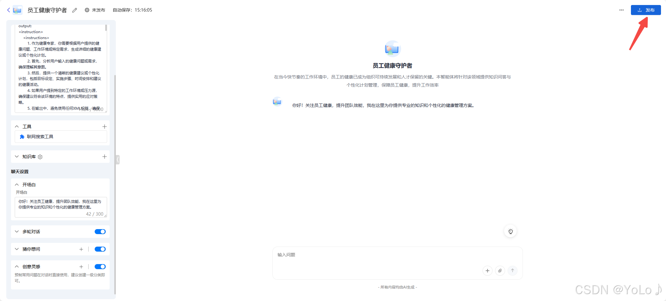发布后能在主页搜索到我们编排的智能体,可以进行版本迭代更新,优化用户体验