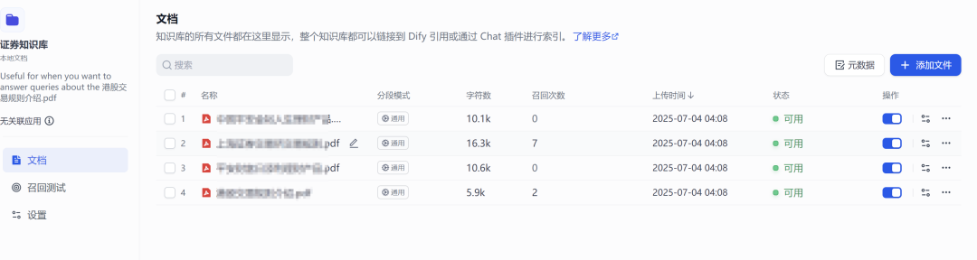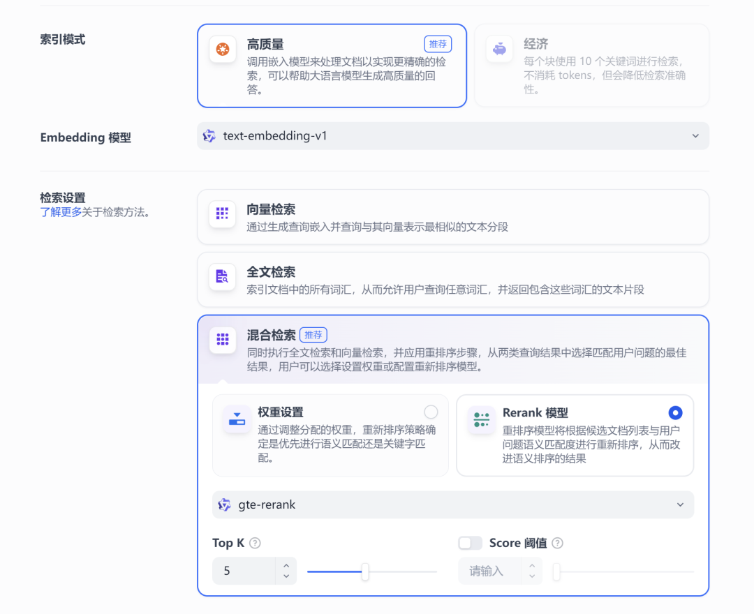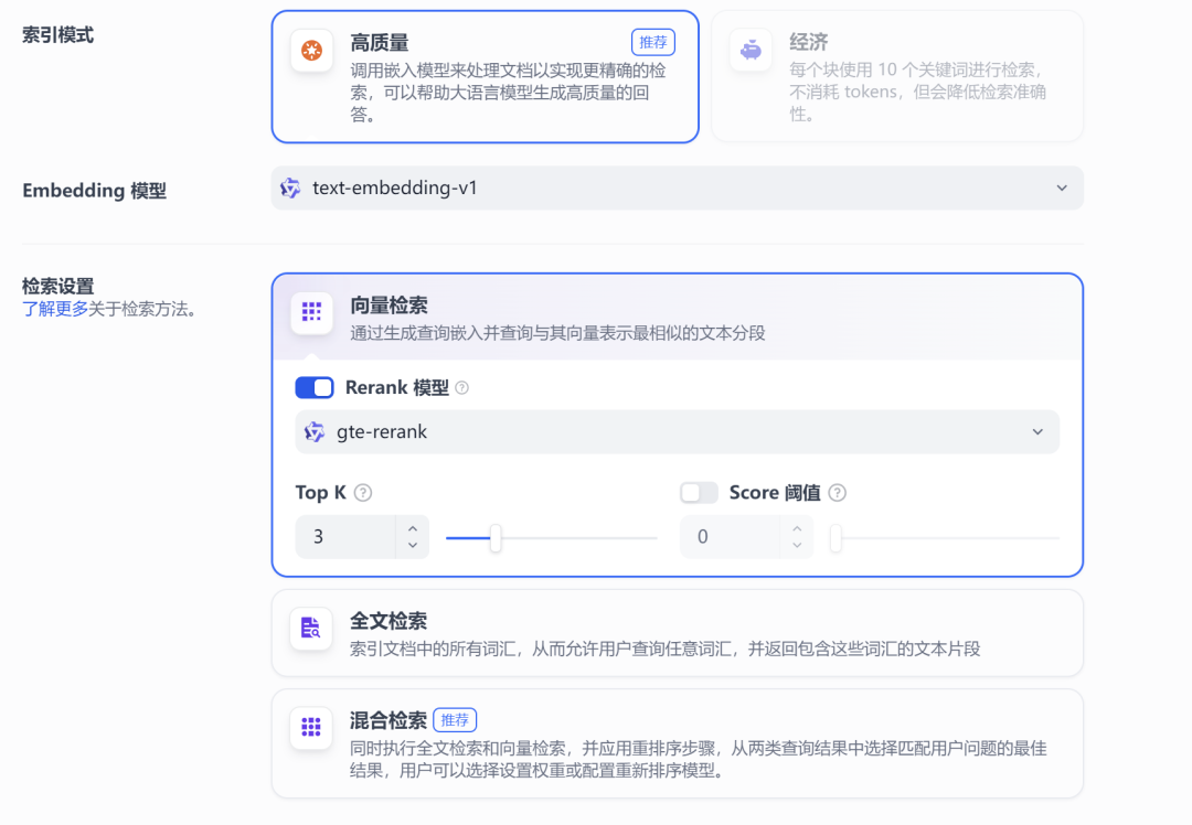 相关设置如下(分段设置/索引模型/embedding模型/检索设置)
