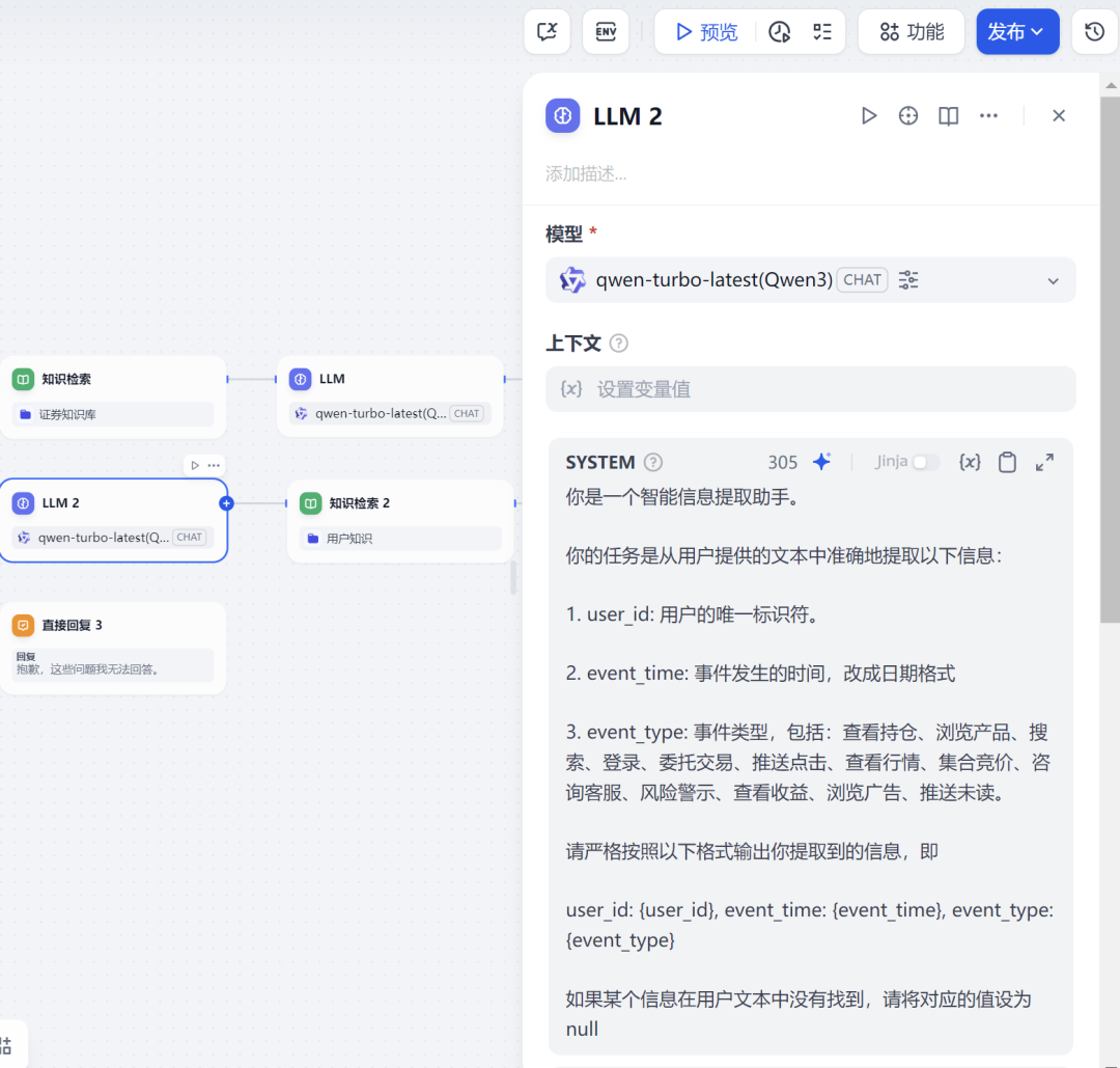 6、针对分类1,添加大模型节点,选用的模型也是qwen3