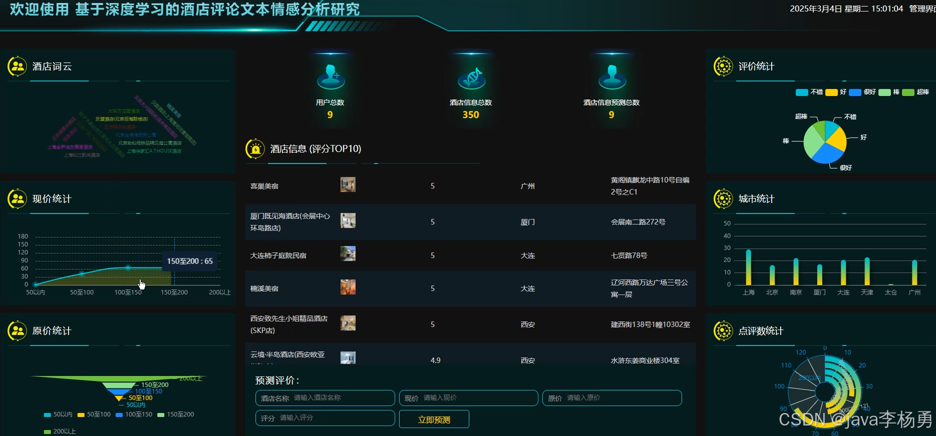 随着互联网与信息技术的飞速发展,在线旅游平台积累了海量的酒店评论数据。这些文本信息蕴含了消费者对酒店服务、环境、设施等方面的真实情感与反馈,具有极高的商业价值。然而,面对如此庞大且非结构化的评论文本,传统的人工分析方法显得力不从心,效率低下且难以保证客观性。因此,利用先进的大数据与人工智能技术,构建一套自动化的酒店评论文本情感分析系统,不仅具有重要的理论意义,也具备广阔的应用前景。