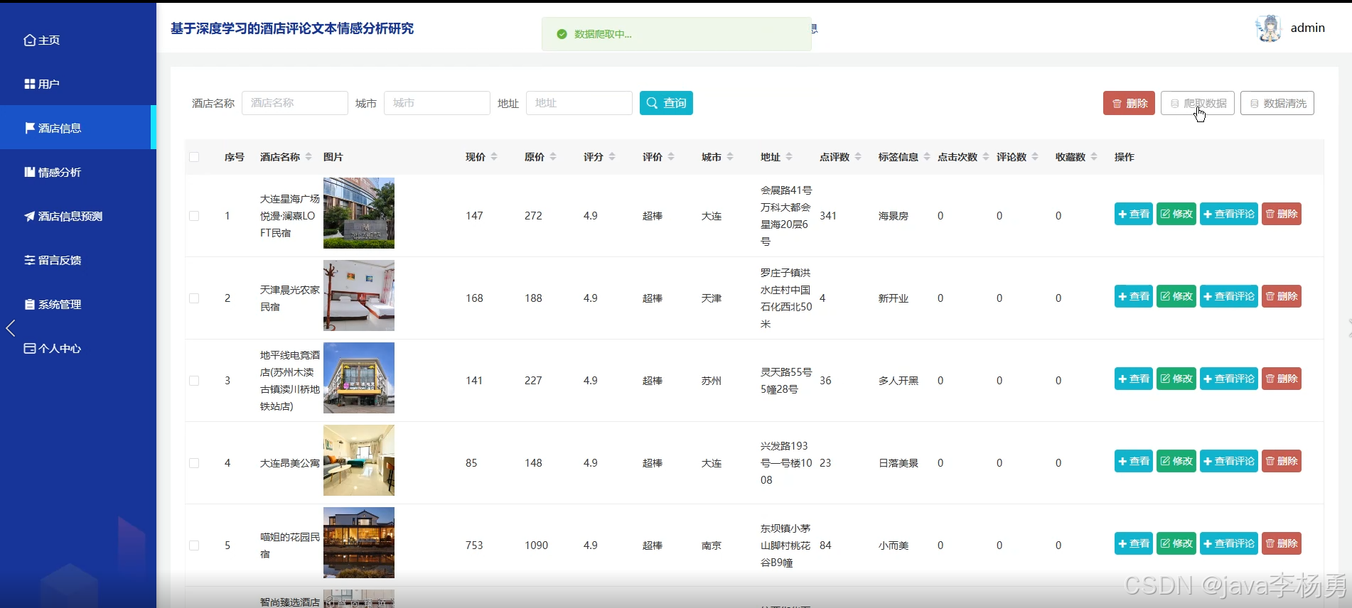 基于大数据Hadoop+网络爬虫+数据可视化+深度学习预测算法的酒店评论文本情感分析研究设计与实现(精品源码+精品论文+上万数据集+答辩PPT)