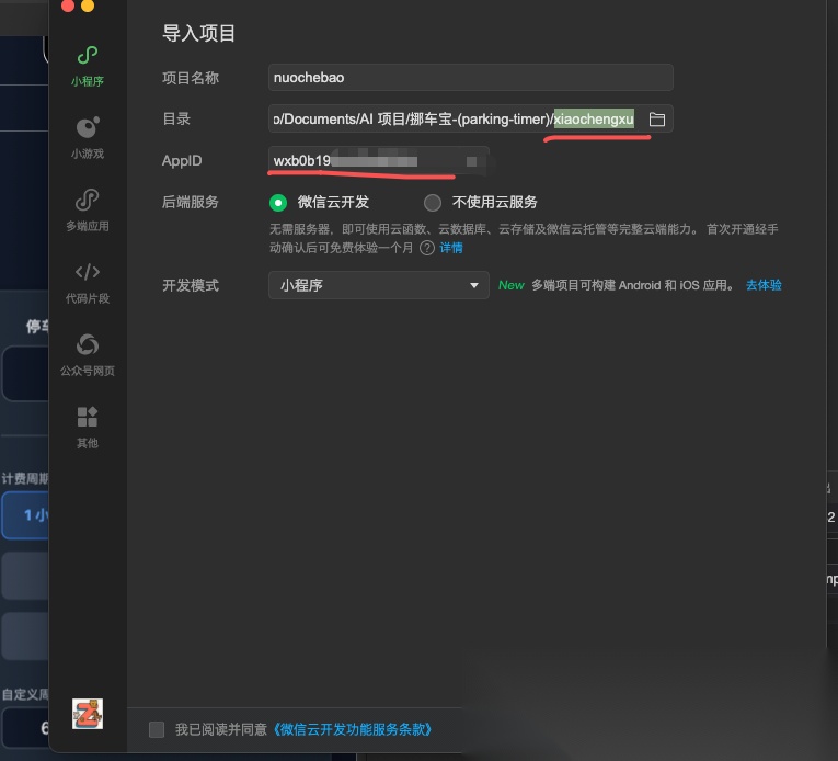导入项目,目录定位到前面对应的小程序所在目录,比如这个项目的目录叫xiaochengxu