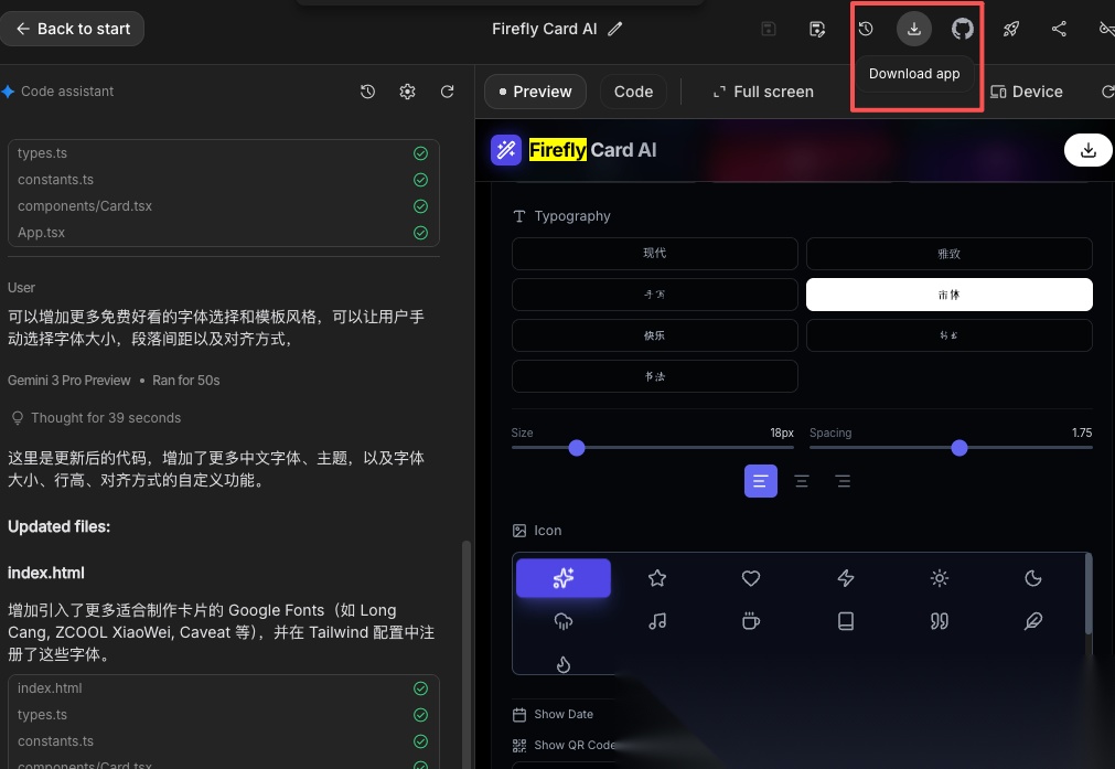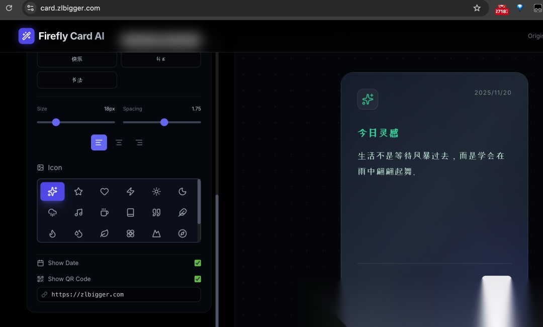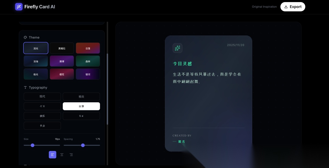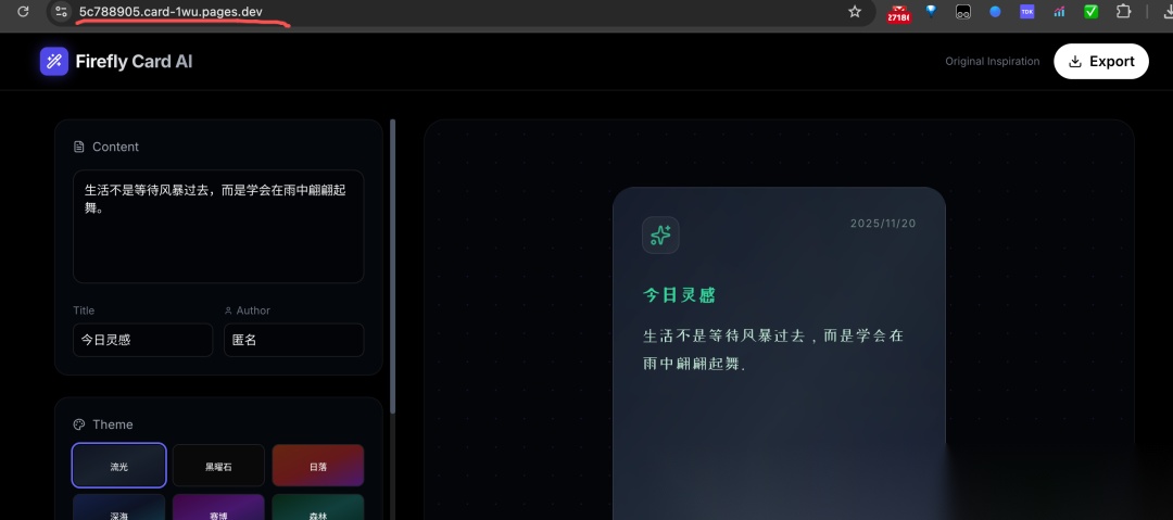 拿我昨天用 gemini 3 复刻的流光卡片搞的一个文字卡片应用: