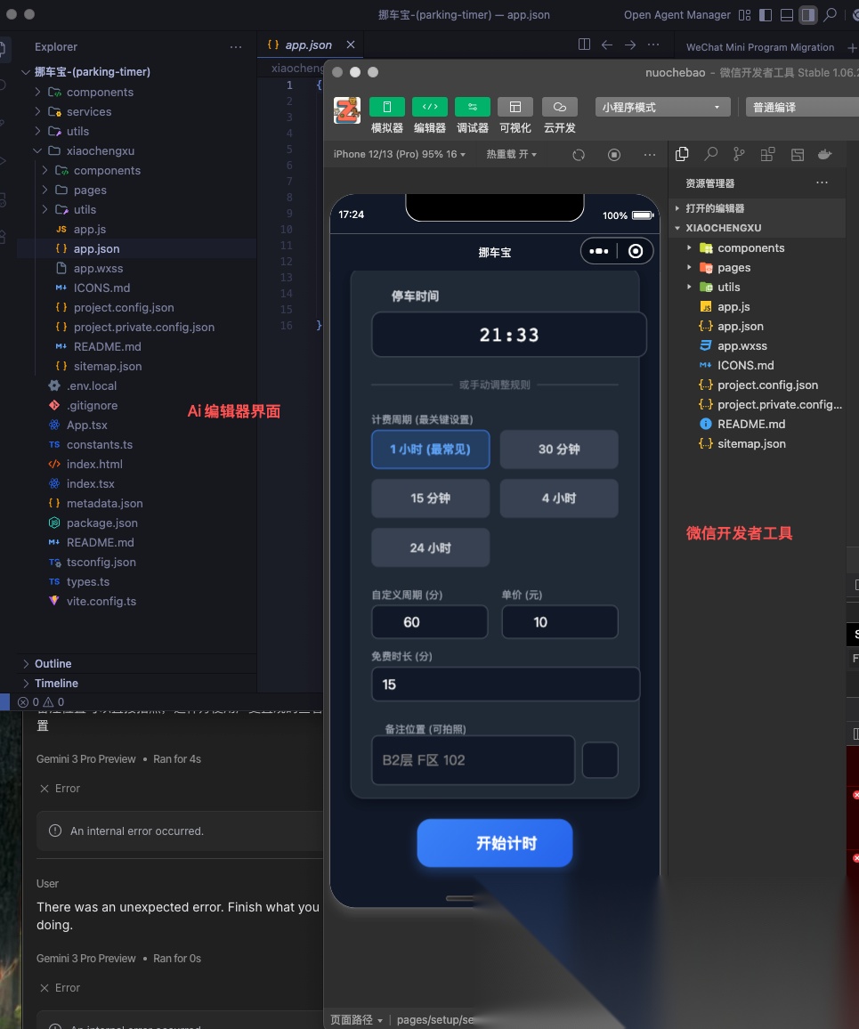 这样的话,你就可以一边在 AI 编辑器里口述修改,另一边在微信开发工具上实时预览效果。