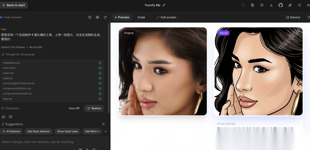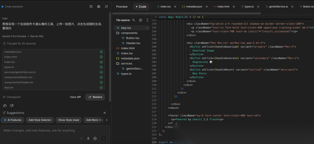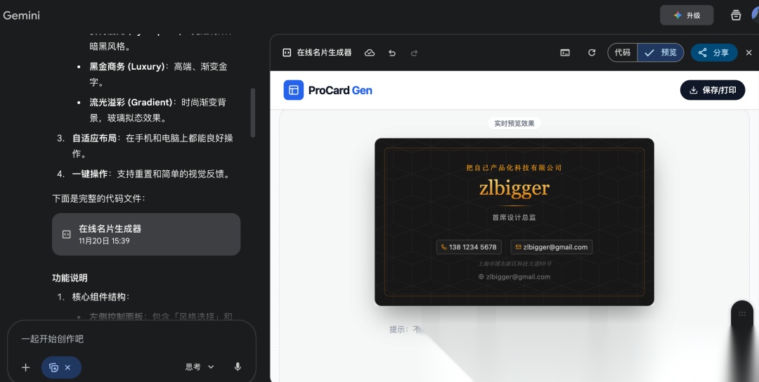 以前需要会编程、懂设计、有资源才能做出原型,现在一个prompt就能看到雏形。很多"想法→产品"的距离从几个月缩短到几小时甚至几十分钟,这对非技术背景的创作者来说是巨大的赋能。