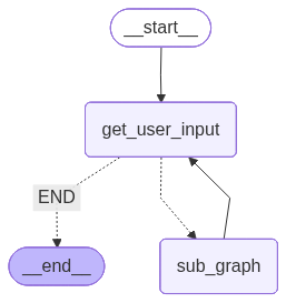 - 子图处理完成后,返回主图,继续获取下一个用户输入