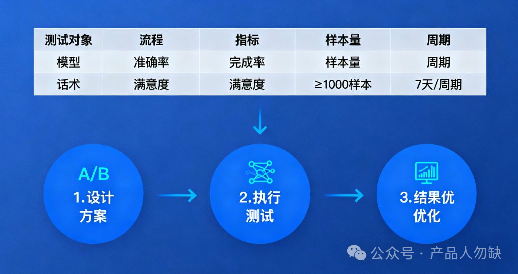 | 对话流程 | 任务完成率 | 500用户 | 1周 |