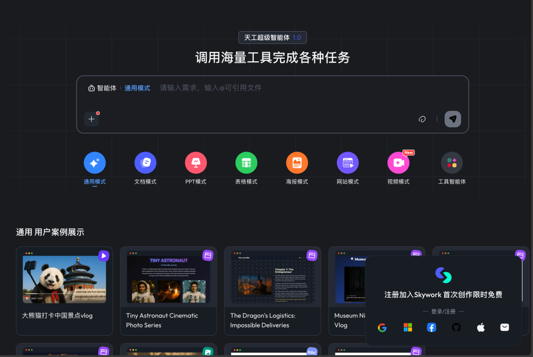 **核心使用场景:**内容创作、研究分析、生图生视频、办公协作