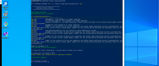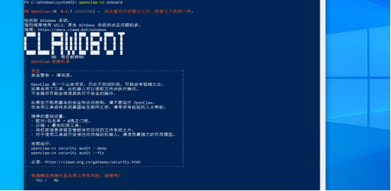 安装后会自动启动openclaw程序,注意该界面不可关闭,若不小心关闭可在cmd窗口执行openclaw-cn gateway 重新启动