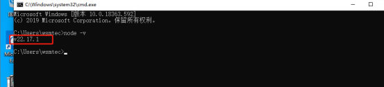 安装好之后win+X打开powershell管理员窗口输入node -v检查是否安装成功