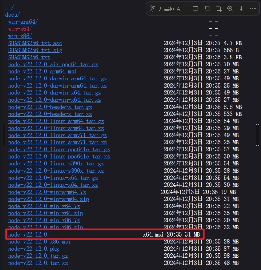 step2 : 安装完成后验证:node -v 看到 v22.12.0