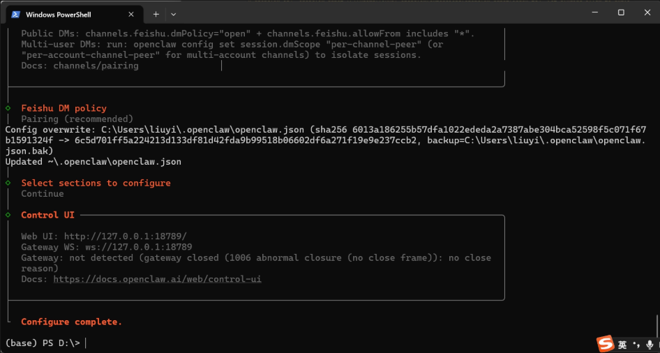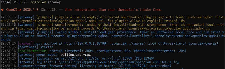 在powershell中输入 openclaw gateway --port 18789 --verbose