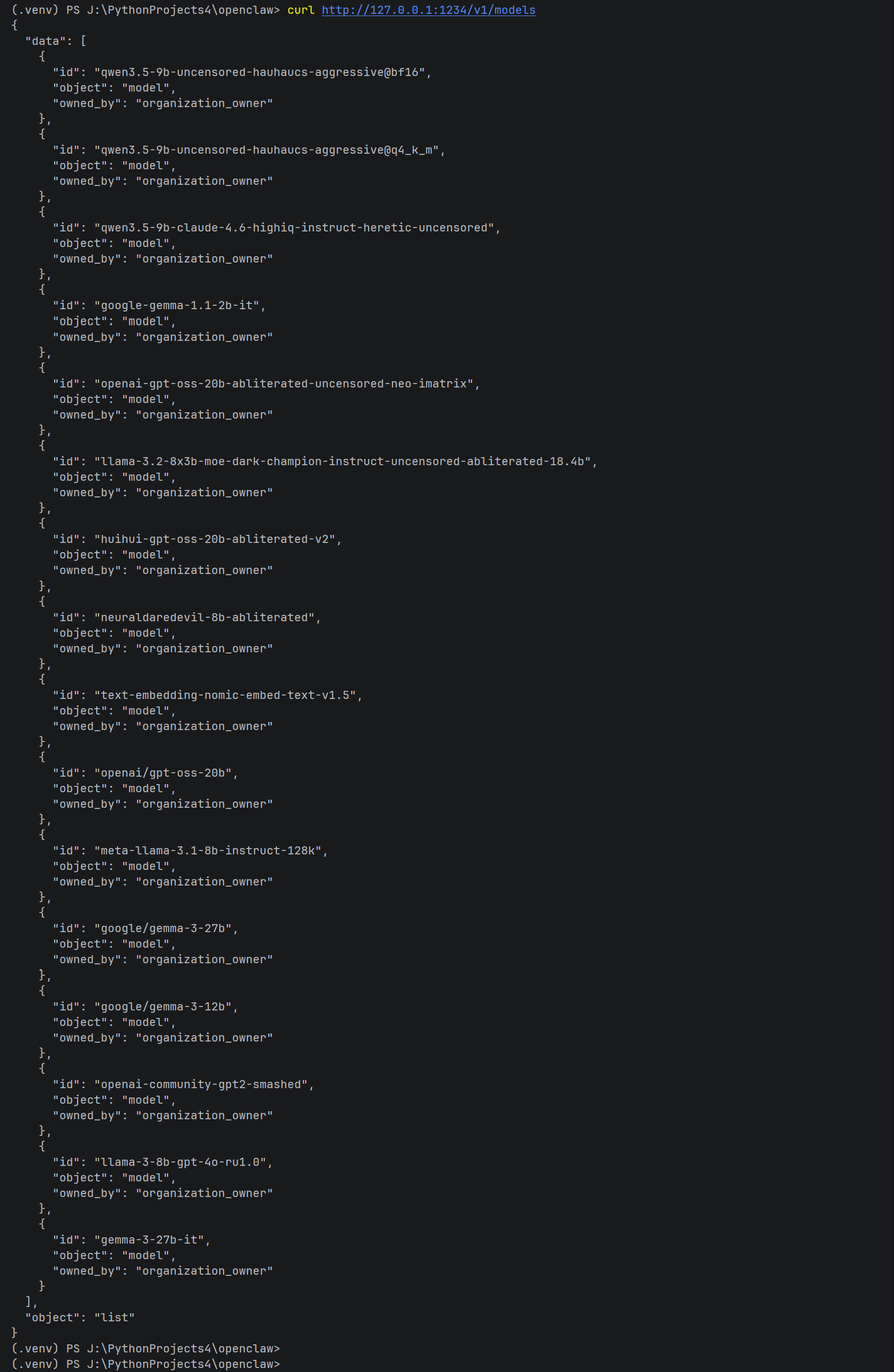 | 1 | curl http://127.0.0.1:1234/v1/models 获取所有模型 id |