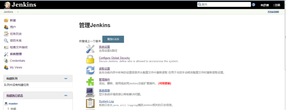 在已运行的Jenkins主页中,点击左侧的系统管理进入如下界面: